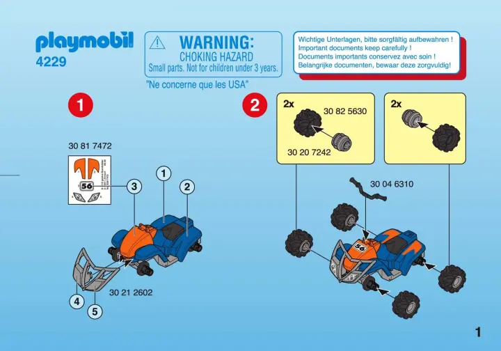 Langsam rollt das blaue Racing Quad zum Start, wo sein Herausforderer schon wartet: das rote Rennquad des Pick-Up mit Racing Quad (Art. 4228)! Jetzt ist es soweit: schnell den Rückziehmotor aufziehen, Startsignal geben und los geht’s! Das blaue Racing Quad erwischt den besseren Start und geht in Führung, aber das rote Quad holt langsam auf. Ein Kopf-an-Kopf-Rennen! Wer wird gewinnen?