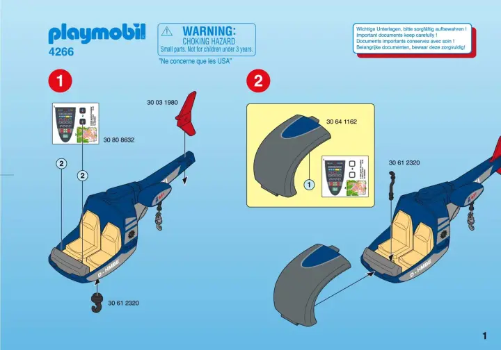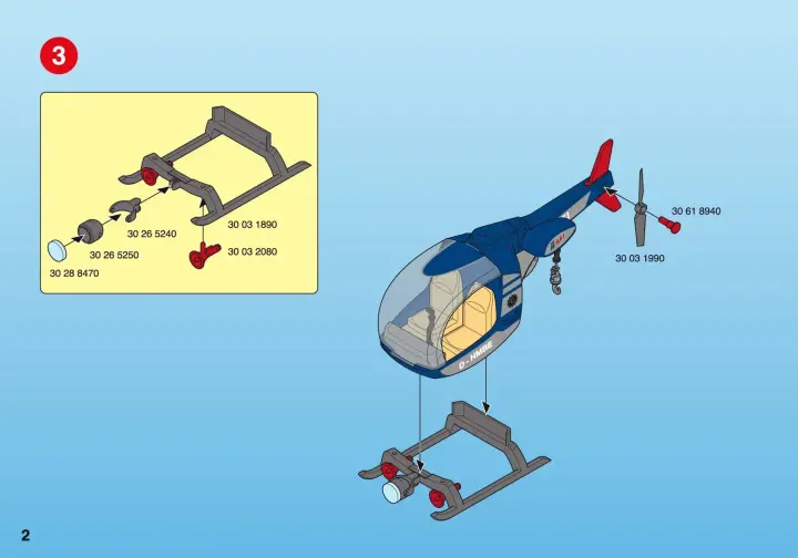 Von ihrem Polizeihubschrauber aus haben die Polizisten den perfekten Überblick, da entgeht ihnen kein Verbrechen! Und wehe den Gangstern, die sie aus der Luft aufgespürt haben - egal, ob sie zu Lande, zu Wasser oder in der Luft fliehen wollen, dem Polizeihubschrauber entkommt keiner! Denn selbst wenn der Hubschrauber nicht landen kann, seilt er einfach einen Polizisten mit seiner funktionierenden Seilwinde ab...