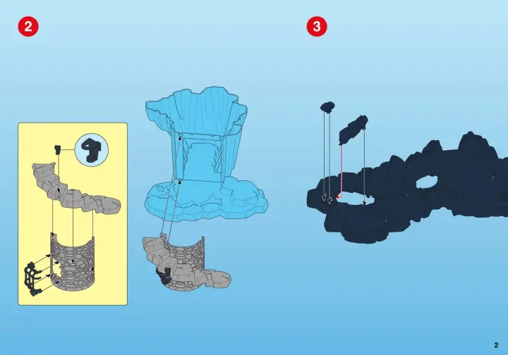 "Alarm, Angriff der Grünen Drachenritter!" ruft der Wachtposten der Großen Drachenburg. "Alle Mann zu den Waffen und ruft unseren Drachen!" Kaum leuchtet das Signalfeuer auf, stürmt schon der rote Drache herbei und greift die Gegner an, während die Roten Drachenritter sie mit ihrer Balliste beschießen. Rasch suchen die Grünen Drachenritter Deckung unter den Felsen der Großen Drachenburg. Doch dieser Platz ist nur scheinbar sicher: wenn du jetzt den verborgenen Hebel am Turm betätigst, donnert der mächtige Fallstein auf sie hinab! Das Burgverlies wartet schon auf sie... Und wenn du erst den Drachenturm (Art. 4836) erobert hast, kannst du ihn mit deiner Großen Drachenburg zur mächtigsten Festung im ganzen Drachenland kombinieren!