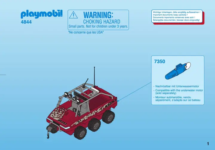 "Los geht's!" ruft der Schatzsucher und klettert in seinen mächtigen Amphibientruck. Vor ihm liegt eine lange Expedition durch den tiefsten Dschungel, aber mit sechs Rädern und Geländeachsen kommt er überall durch! Und selbst wo alle Wege enden, geht es für den Truck immer noch weiter - notfalls fährt er einfach einen Fluss hinauf, schließlich kann er schwimmen!
