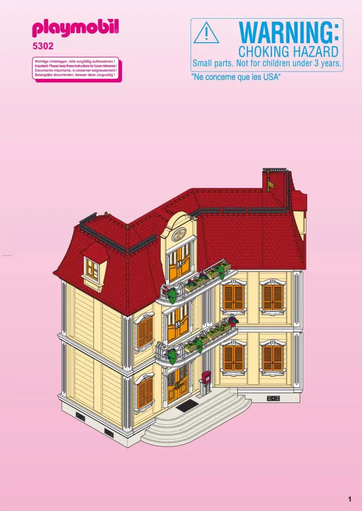 Mit zwei goßen Treppen und funktionierender Türklingel (benötigt 2 x 1,5 V Micro-Batterien). Die Fensterläden können geschlossen, die Vorhänge beliebig in den Zimmern getauscht werden. Einzurichten mit den Möbeln von sieben attraktiven Zimmern (Art.Nr. 5329 bis 5335). Maße: 63 x 45 x 61 cm (LxTxH). "Ding dong!" macht die Türklingel des Großen Puppenhauses. "Sie funktioniert!" freut sich der Mann, der erst gestern mit seiner Frau eingezogen ist. Die beiden fühlen sich in dem geräumigen Haus mit den vielen hellen Zimmern richtig wohl. "Guck doch auch gleich mal in den Briefkasten!" ruft seine Frau von einem der beiden Balkone, auf dem sie gerade Blumen in die Kästen pflanzt. Die beiden haben noch viel zu tun. Schließlich muss das große Haus noch hübsch eingerichtet werden....