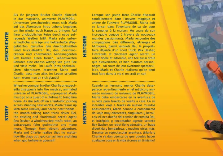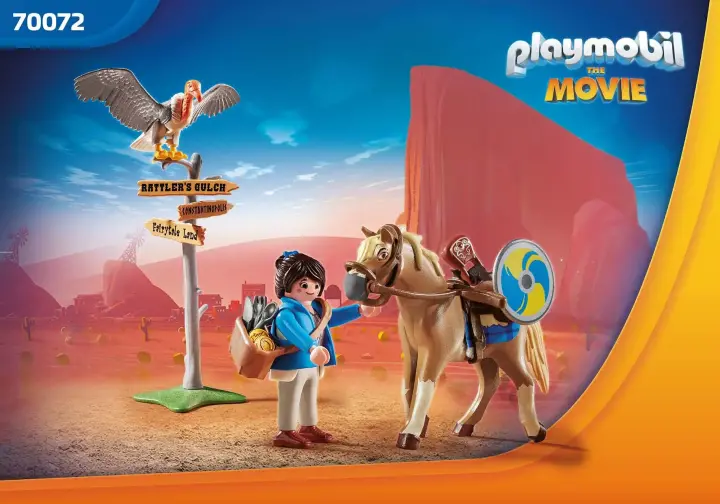 In der fantastischen PLAYMOBIL® Welt ist nichts so wie es scheint und alles ist möglich. Das stellt Marla schnell fest, als sie unerwartet in dieses magische und verrückte Universum katapultiert wird. Auf der Suche nach ihrem kleinen Bruder Charlie, muss sie sich vielen Herausforderungen stellen. Zum Glück trifft sie neue, schräge und heldenhafte Weggefährten und hat auch ein Pferd an ihrer Seite das sie schneller voran bringt.PLAYMOBIL: The Movie© ist der erste Animationsfilm inspiriert durch die fantasievolle PLAYMOBIL® Welt und nimmt die Zuschauer mit auf ein episches, lustiges und unvergessliches Abenteuer. Passend zum Kinostart gibt es neun coole Spielsets rund um den PLAYMOBIL Film. Im Spielset enthalten ist Filmcharakter Marla im blauen Cardigan, ein Pferd, eine Umhängetasche mit Besteck und Gold, sowie weitere Extras.