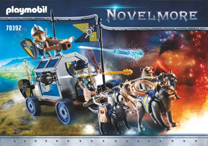 Müssen die Ritter von Novelmore wertvolle Fracht transportieren, nutzen sie dazu ihren Schatztransport. In der Schatztruhe befinden sich Dario DaVancis überaus wertvolle Zeichnungen zur Herstellung der magischen Rüstung Invincibus. Natürlich haben die Burnham Raiders es auf diese Aufzeichnungen abgesehen. Doch dazu müssen sie erst einmal an Parcival Rush, dem schnellsten Paketboten Novelmores vorbei. Parcival bringt alle Pakete, Schätze und Unterlagen im Nu ans Ziel und hat dabei immer eine lustige Geschichte zu erzählen. In seiner Begleitung sitzt auf dem Kutschbock Schatzmeister Sammy Silvercoin. Als königlicher Schatzmeister hat er nicht nur die Finanzen Novelmores im Blick, sondern kümmert sich auch persönlich um wertvolle Frachttransporte, so dass die Burnham Raiders ihnen nicht in die Quere kommen. Das Spielset besteht aus den Novelmorecharakteren Schatzmeister Samuel Silvercoin, Paketbote Parcival Rush, einem mobilen Tresorwagen gezogen von fünf Wölfen mit Armbrust und Kanonengeschoss an der Seite. Schau dir hier die neue Serie rund um deine Novelmore-Helden auf YouTube an.