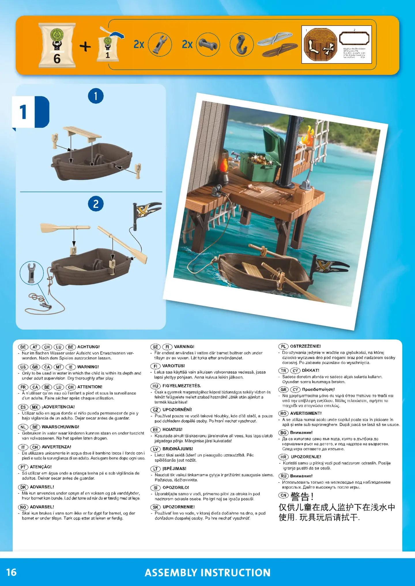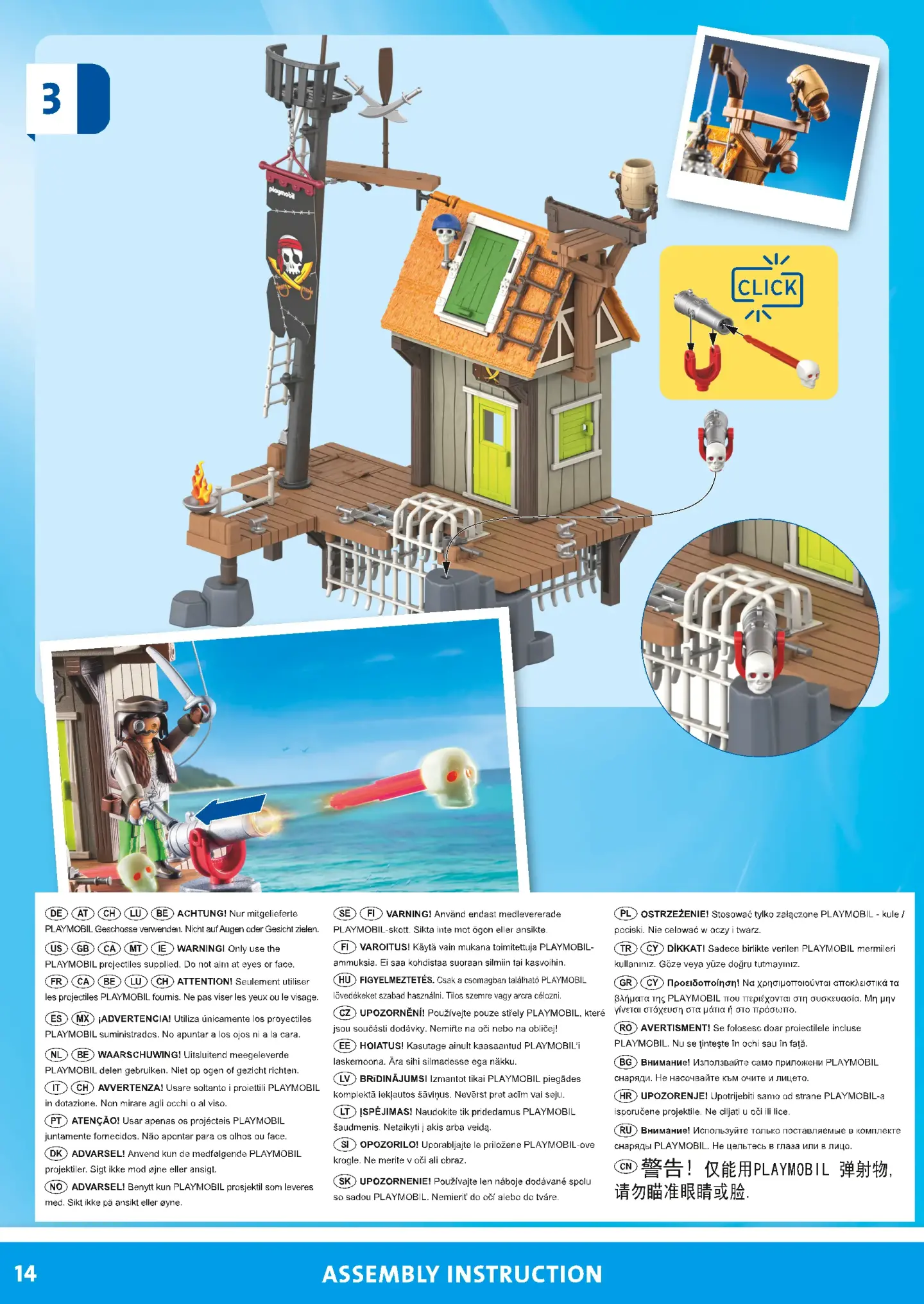 Der große Piratenhafen von PLAYMOBIL dient nicht nur als Anlegestelle für stolze Seeräuber-Schiffe, sondern auch als gefürchtetes Gefängnis! Im großen Käfigbecken unter dem Wachhaus, das zudem durch eine Falltür erreichbar ist, können gefährliche Haie oder rivalisierende Piraten festgesetzt werden! Im Krähennest wird bei Gefahr sofort Alarm geschlagen: Die Schädel-Kanone und das große drehbare Fass, aus dem kleinere Fässer auf Angreifer geworfen werden können, verteidigen den Hafen gegen Angreifer. Erlebe den PLAYMOBIL Piratenhafen Der PLAYMOBIL Piratenhafen ist mehr als nur eine Anlegestelle für stolze Seeräuber-Schiffe. Dieses spannende Set verwandelt jedes Kinderzimmer in eine actionreiche Piratenwelt. Mit dem großen Käfigbecken, das gefährliche Haie und rivalisierende Piraten fängt, und dem Wachhaus mit Alarm bei Gefahr, bietet der Hafen endlosen Spielspaß. Verteidige deinen Hafen mit der Schädel-Kanone und dem drehbaren Fass und erlebe aufregende Abenteuer auf hoher See! Sichere den Hafen vor Eindringlingen Im PLAYMOBIL Piratenhafen kannst du gefährliche Haie und rivalisierende Piraten in der großen Käfigfalle festnehmen. Das Wachhaus mit Falltür ermöglicht schnellen Zugang und Kontrolle. Mit der Schädel-Kanone und dem drehbaren Fass verteidigst du den Hafen effektiv gegen Angreifer. So bleibt dein Piratenhafen sicher und bereit für spannende Abenteuer. Actionreiche Verteidigungssysteme Der Krähennest-Alarmanlasser sorgt bei Gefahr sofort für Aufregung. Die leuchtenden Totenkopf-Kanonenkugeln und die schwenkbaren Kanonenrohre bieten realistische Verteidigungsmechanismen, die für jede Menge Spaß und Spannung sorgen. Geheime Schätze und versteckte Verstecke Unter der Aussichtsplattform wartet ein geheimes Schatzversteck darauf, entdeckt zu werden. Mit einbrüchenden Stegen und geheimnisvollen Falltüren erlebst du unvergessliche Piratenabenteuer und findest wertvolle Schätze in deinem Hafen. Merkmale Detailreiche Ausstattung für fantasievolles Spielen Der PLAYMOBIL Piratenhafen ist mit zahlreichen Accessoires wie Flaggen, Ketten und dem schwenkbaren Kran ausgestattet. Diese Details ermöglichen kreative Spielszenarien und fördern die Fantasie der Kinder beim Erleben spannender Piratenabenteuer. Realistische Elemente für authentischen Spielspaß Liebevoll gestaltete Details wie die Schädel-Kanone, der Hammerhai und die leuchtenden Kanonenkugeln sorgen für eine realistische und immersive Spielerfahrung im PLAYMOBIL Piratenhafen. Robust und langlebig für langanhaltenden Spielspaß Hergestellt aus hochwertigen Materialien garantiert das PLAYMOBIL Piratenhafen-Set robusten und langanhaltenden Spielspaß, der den abenteuerlichen Piratenmissionen standhält.