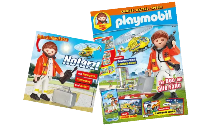 Die 36 Seiten enthalten zwei tolle Comics, ein super Gewinnspiel, zwei Postermotive und viele Mitmach-Seiten. Extra: Notarzt mit Koffer und Funkgerät