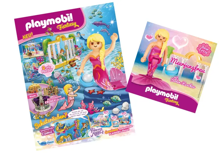 Die 36 Seiten enthalten einen tollen Comics, ein super Gewinnspiel, zwei Postermotive und viele Mitmach-Seiten. Extra: Meerjungfrau mit Perlen-Kescher