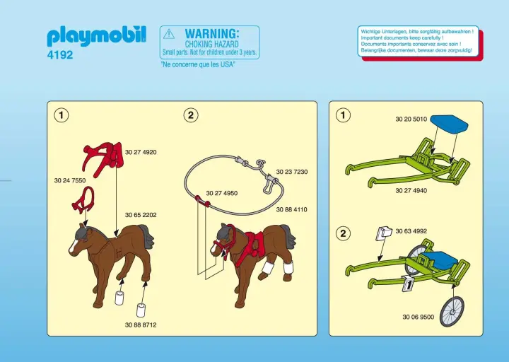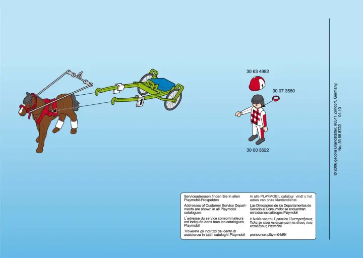 Driver et son sulky tiré par un cheval. Avec attelage de course, bride et bandes de protection pour les chevilles du cheval.