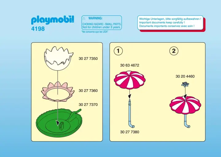 La fée a des ailes souples, elle peut tenir debout ou assis sur le nénuphar géant. Avec une ombrelle et une grenouille. Le nénuphar peut accoster sur le pont du jardin des fées (Ref. 4199).