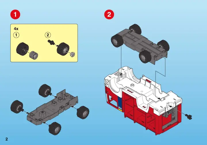 Intervention d`urgence pour les pompiers à bord du fourgon ! Avec pompe à incendie et de nombreux accessoires. Se transforme en véhicule radiocommandé grâce au module compact (Réf. 4856).