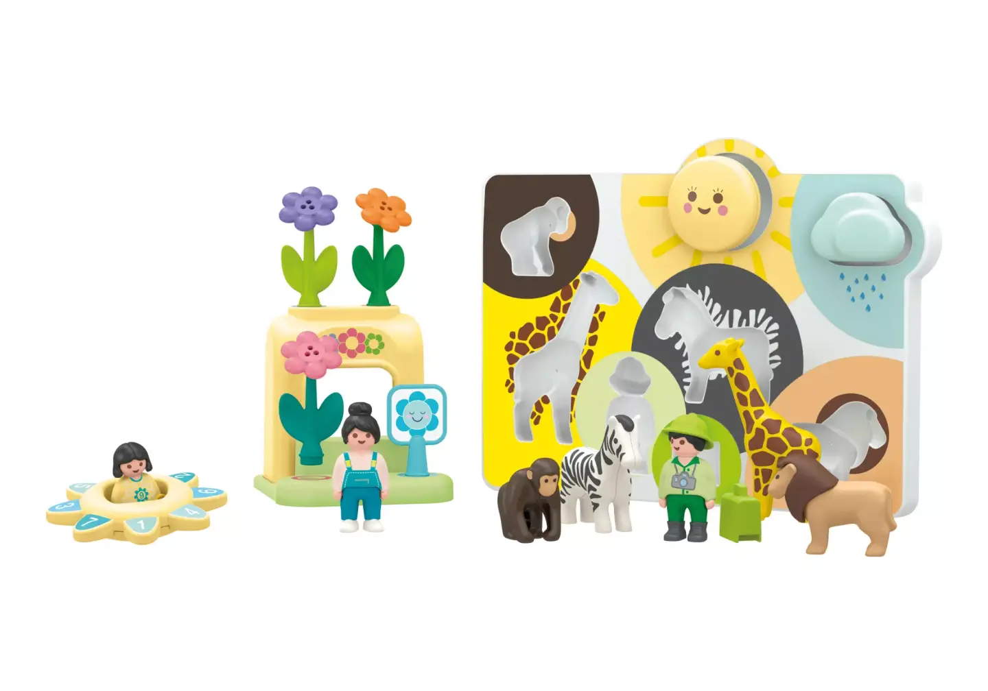 Mon premier Playmobil» propose 3 thèmes pour les petits. Le puzzle aide à placer chaque pièce au bon endroit, le magasin de fleurs permet de trier les couleurs, et le tourne-soleil introduit les chiffres en tournant. Ce set encourage la découverte et l'apprentissage. Caractéristiques spéciales du produit : • Puzzle de huit pièces sur la faune et la flore • Kiosque de fleurs avec vendeur et fleurs pour trier les couleurs • Fleurs avec pétales mobiles • Quatre trous de fixation pour un positionnement flexible du panneau et des fleurs • Toupie avec chiffres et fonction de hochet • Apprendre les couleurs, les formes et les chiffres • Dimensions du puzzle avec les pièces : environ 31 x 23 x 3,5 cm (LxLxH) • Dimensions du magasin de fleurs sans les fleurs : environ 11,5 x 12,5 x 12,5 cm (LxLxH) • Dimensions de la toupie sans figurine : environ 10,5 x 10,5 x 2,5 cm (LxLxH) PLAYMOBIL JUNIOR - conçu pour les plus jeunes fans de PLAYMOBIL ! Parfait pour les petites mains et les découvertes des tout-petits. Avec de nombreuses caractéristiques attrayantes telles que l'empilage, les puzzles ou le triage. Laissez votre enfant âgé de 1 à 4 ans faire ses premiers pas dans le grand monde de PLAYMOBIL avec PLAYMOBIL JUNIOR ! PLAYMOBIL JUNIOR est conçu pour assurer la sécurité de votre enfant : PLAYMOBIL JUNIOR est sans BPA et ne contient pas de petites pièces qui pourraient être avalées. Tous les jeux PLAYMOBIL JUNIOR sont fabriqués avec plus de 90 % de plastique d'origine biologique (certifié ISCC PLUS). Le plastique peut être retracé jusqu'à la matière première biosourcée en utilisant l'approche du bilan de masse. Nous nous engageons ainsi à réduire de manière significative l'utilisation des ressources fossiles. PLAYMOBIL JUNIOR - Découvrez le monde d'une manière adaptée aux tout-petits !