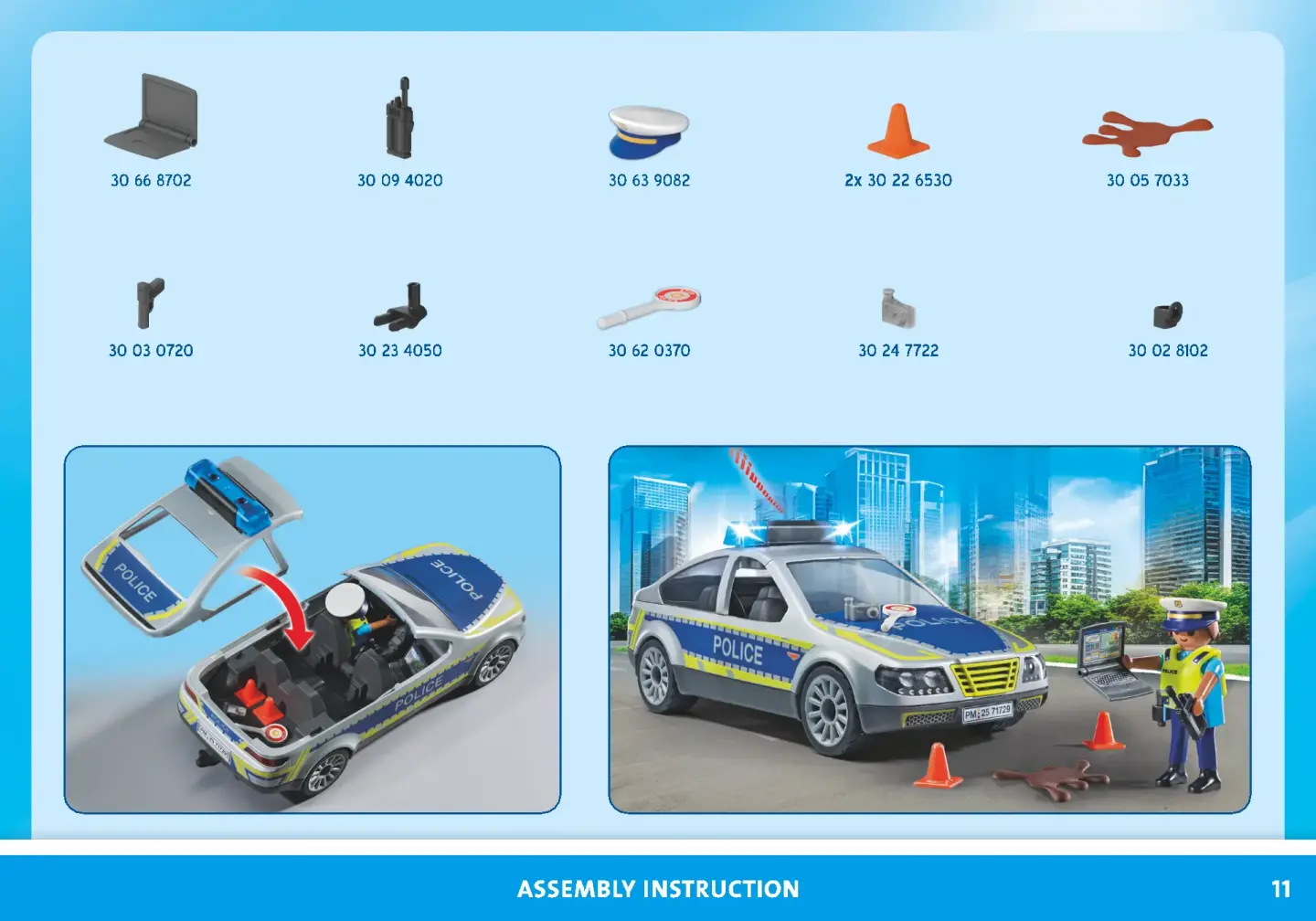 Rencontrez un officier en pleine action, bloquant la route pour enquêter sur un liquide répandu ou signaler un incident. Comprend un personnage, une voiture et des accessoires. Passez à l'action avec la voiture de police PLAYMOBIL ! Des lumières clignotantes, des sirènes réalistes et de l'espace pour tout votre équipement essentiel la rendent parfaite pour les poursuites à grande vitesse et la sécurisation de la scène. Avec un toit amovible, un attelage de remorque et des accessoires détaillés comme un gilet de haute visibilité, des cônes de signalisation et un carnet de police, chaque mission semble réelle. Qu'il s'agisse d'arrêter des chauffards ou de collecter des preuves, la voiture de police PLAYMOBIL est prête pour des aventures palpitantes qui font régner la loi et l'ordre dans votre salle de jeux. Ajoutez cette voiture de police à votre collection PLAYMOBIL dès aujourd'hui !
