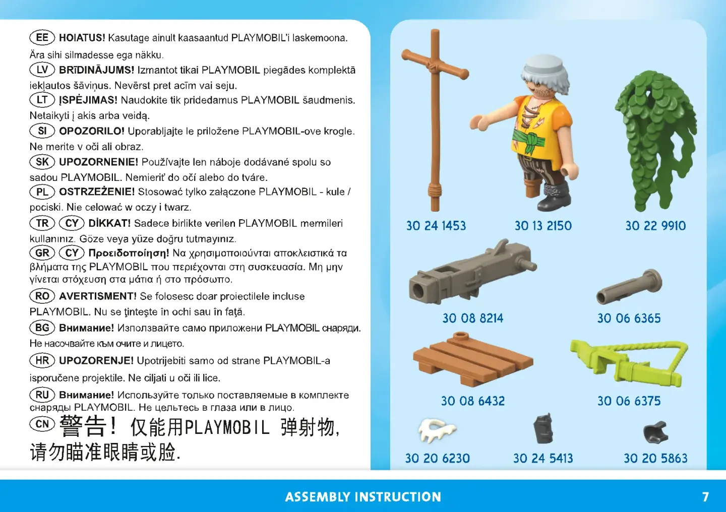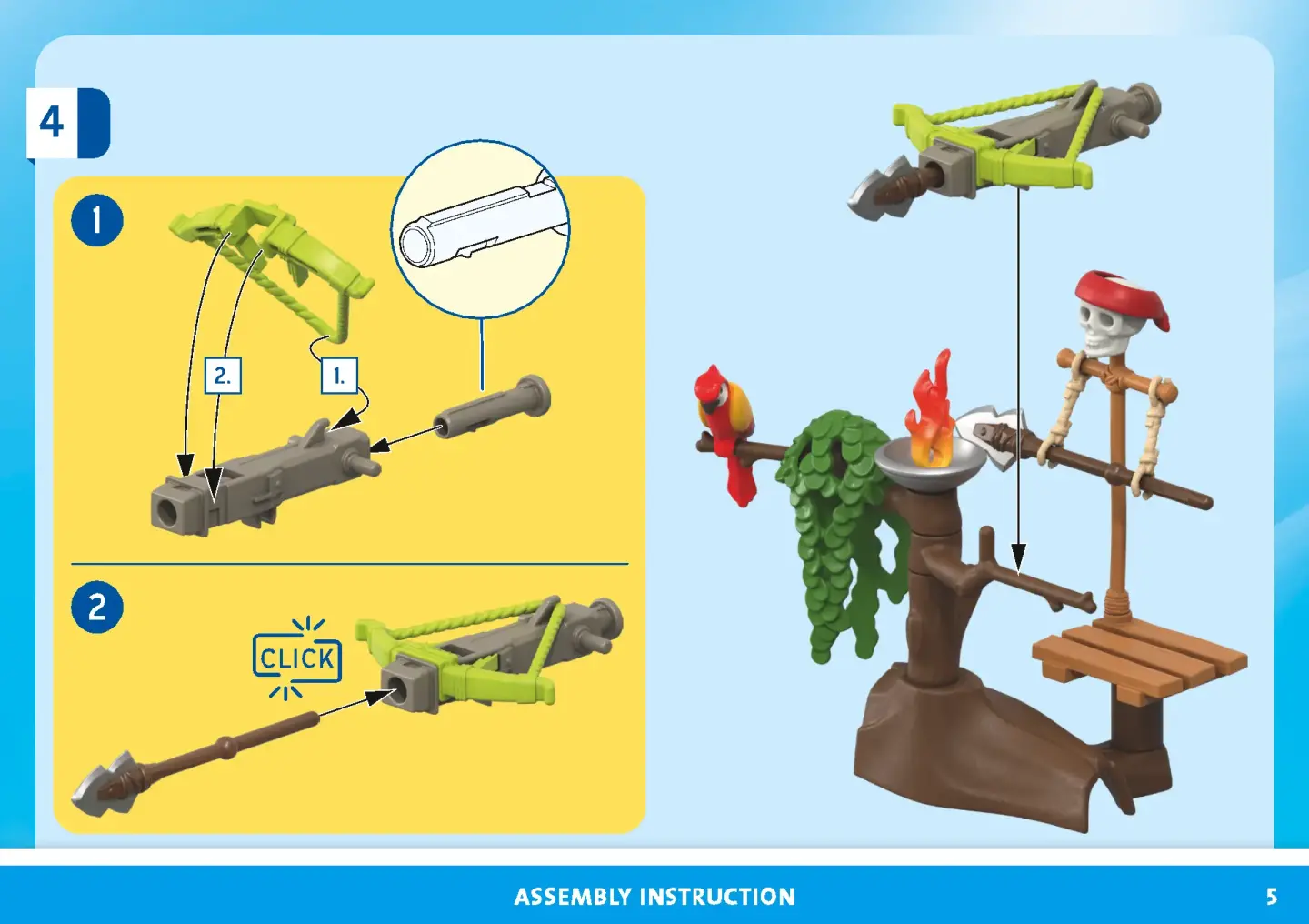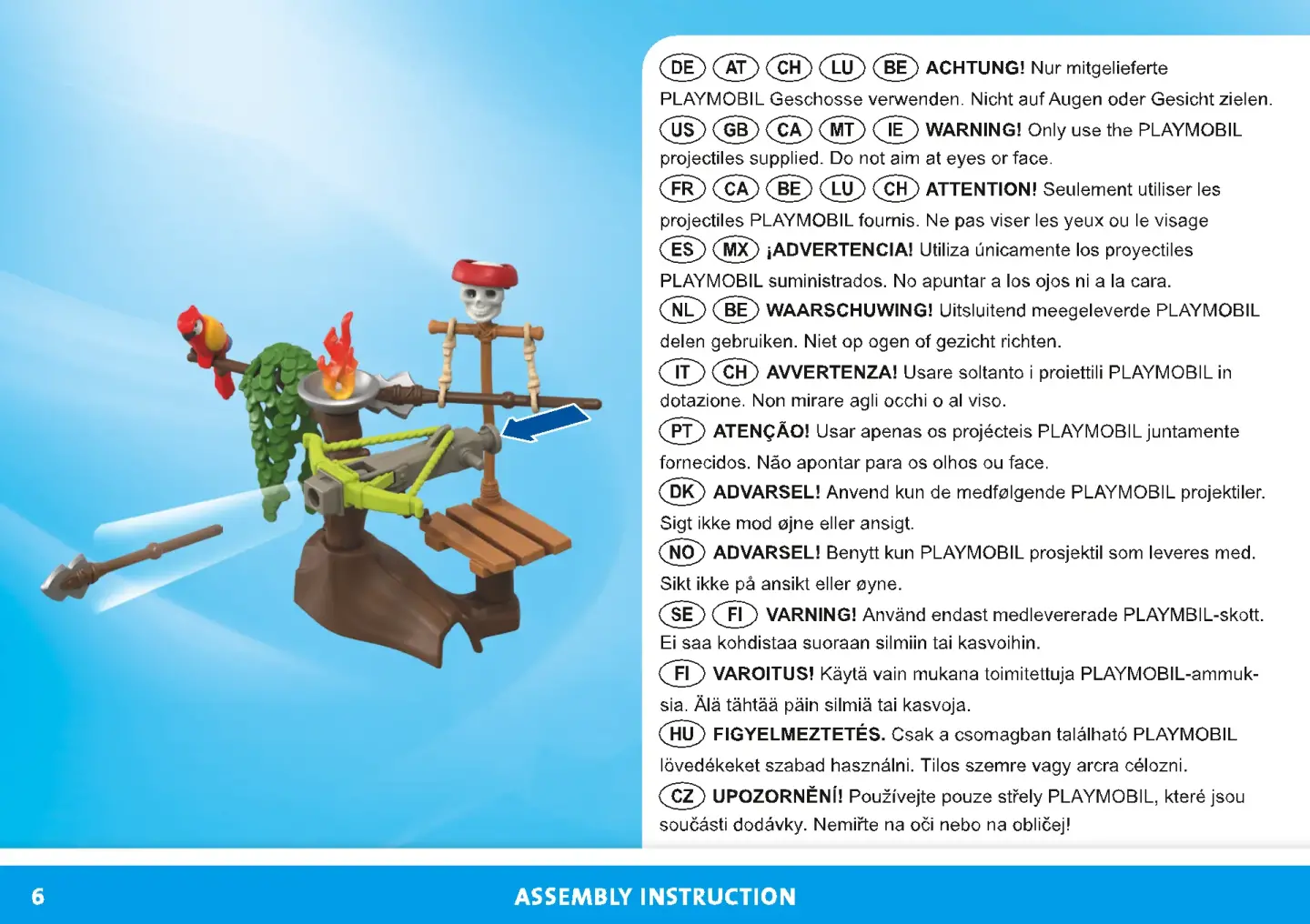 De piraat verdedigt zichzelf met een ballista die aan een tak is bevestigd tegen aanvallende piranha's. Met gerichte schoten van het draaibare wapen slaagt hij erin de gevaarlijke vissen te raken en omver te werpen." Ga op een roekeloze reis met de PLAYMOBIL Pirate met Ballista! Het drijvende vlot is bewapend met draaibare kanonnen, klaar om grijphaken of vlammende vuurballen af te vuren op elke bedreiging. Schatten wachten, bewaakt door een woeste octopus, waaronder een oogverblindende kristallen schedel en gouden kroon. Bewaar extra projectielen in de ton en bereid je voor op gevechten op volle zee. Perfect voor creatieve verhalen, deze PLAYMOBIL-set levert actievolle pret terwijl de onverschrokken piraat gevaar navigeert op zoek naar legendarische rijkdommen!