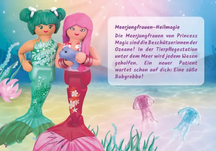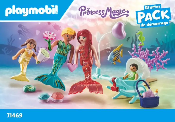 Com o Starter Pack Família de Sereias descobre um mágico mundo subaquático. A jovem família faz uma viagem em conjuntos, maravilhando-se com as grandes conchas marinhas. Os fantásticos Starter Packs da PLAYMOBIL convidam crianças a mergulhar diretamente no variado mundo da PLAYMOBIL. Os sets incluem figuras e acessório, montam-se rapidamente e ficam imediatamente prontos para brincar. Bom para o meio ambiente: Além disso, este set é composto por mais de 80% de materiais sustentáveis.