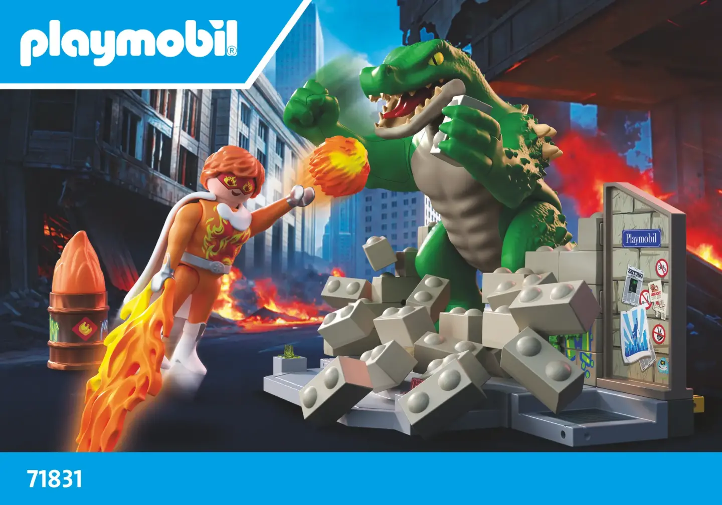PLAYMOBIL Heroes: MegaRaptor vs. Firestormer – Batalha de Heróis Cheia de Ação! O confronto final ocorre em PLAYMOPOLIS: o lagarto gigante MegaRaptor proporciona uma ação espetacular com a sua função de golpe no braço direito e a função de preensão da mão esquerda. Figuras podem ser presas na boca ou agarradas e seguradas na mão. A parede destrutível traz diversão adicional – pode ser sempre reconstruída e derrubada de forma impressionante pelo lagarto gigante. Firestormer ao lado dos heróis: com suas bolas de fogo amovíveis e uma expressão facial mutável, ele está pronto para entrar em batalha e defender PLAYMOPOLIS. O perigo paira sobre a PLAYMOPOLIS quando o colossal MegaRaptor atravessa as muralhas da cidade. Com um braço com uma garra grande e mandíbulas que estalam, o lagarto gigante é uma força de destruição. Mas o heroico Firestormer está pronto, armado com bolas de fogo, uma capa e determinação feroz. As expressões faciais que mudam de Firestomer adicionam drama. A parede destrutível cria uma diversão explosiva, desmoronando com cada golpe e reconstruindo-se para uma repetição interminável. Repleto de acessórios detalhados como chamas, plantas e um barril escondido, este produto PLAYMOBIL cheio de ação oferece confrontos heróicos e batalhas épicas.