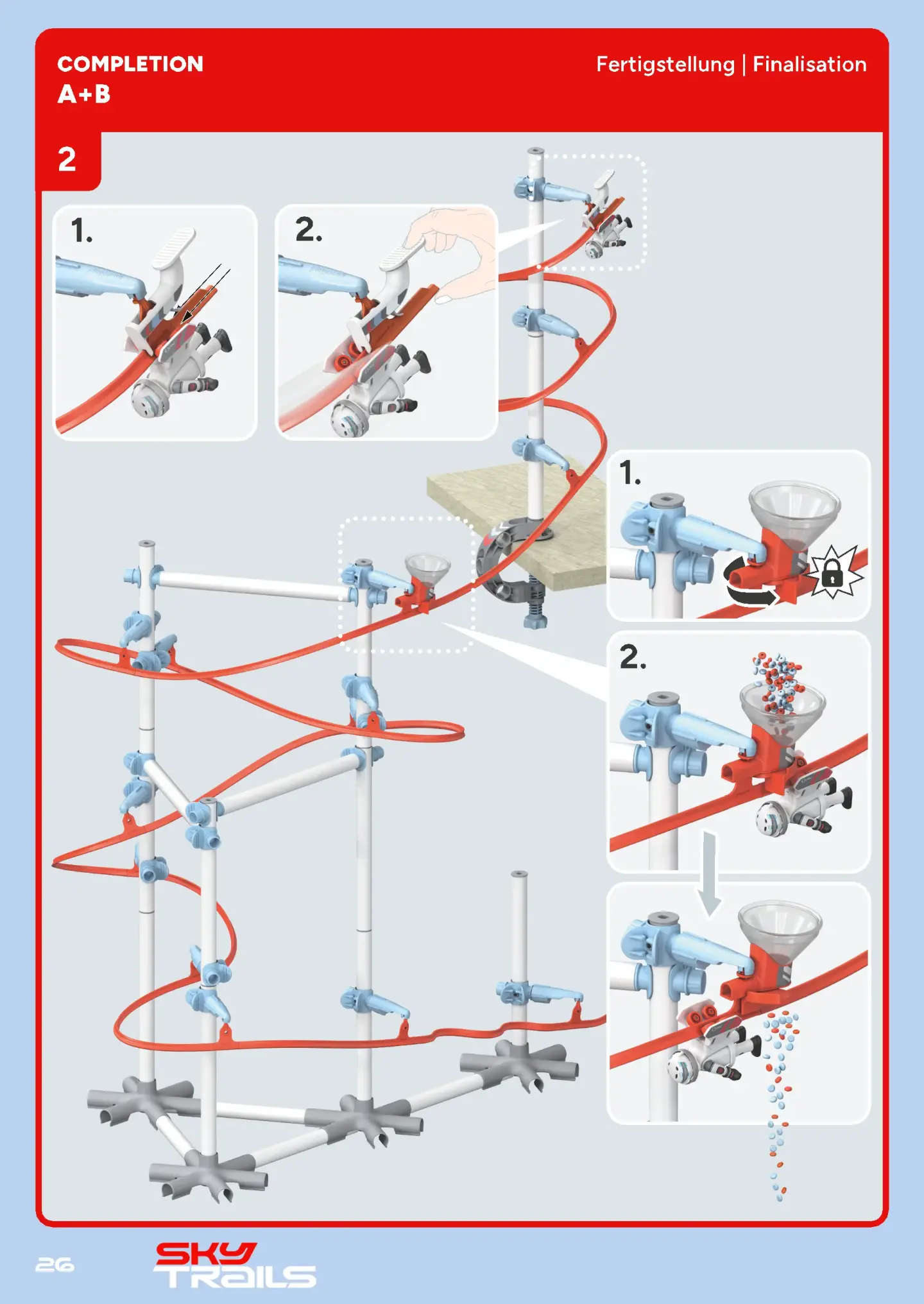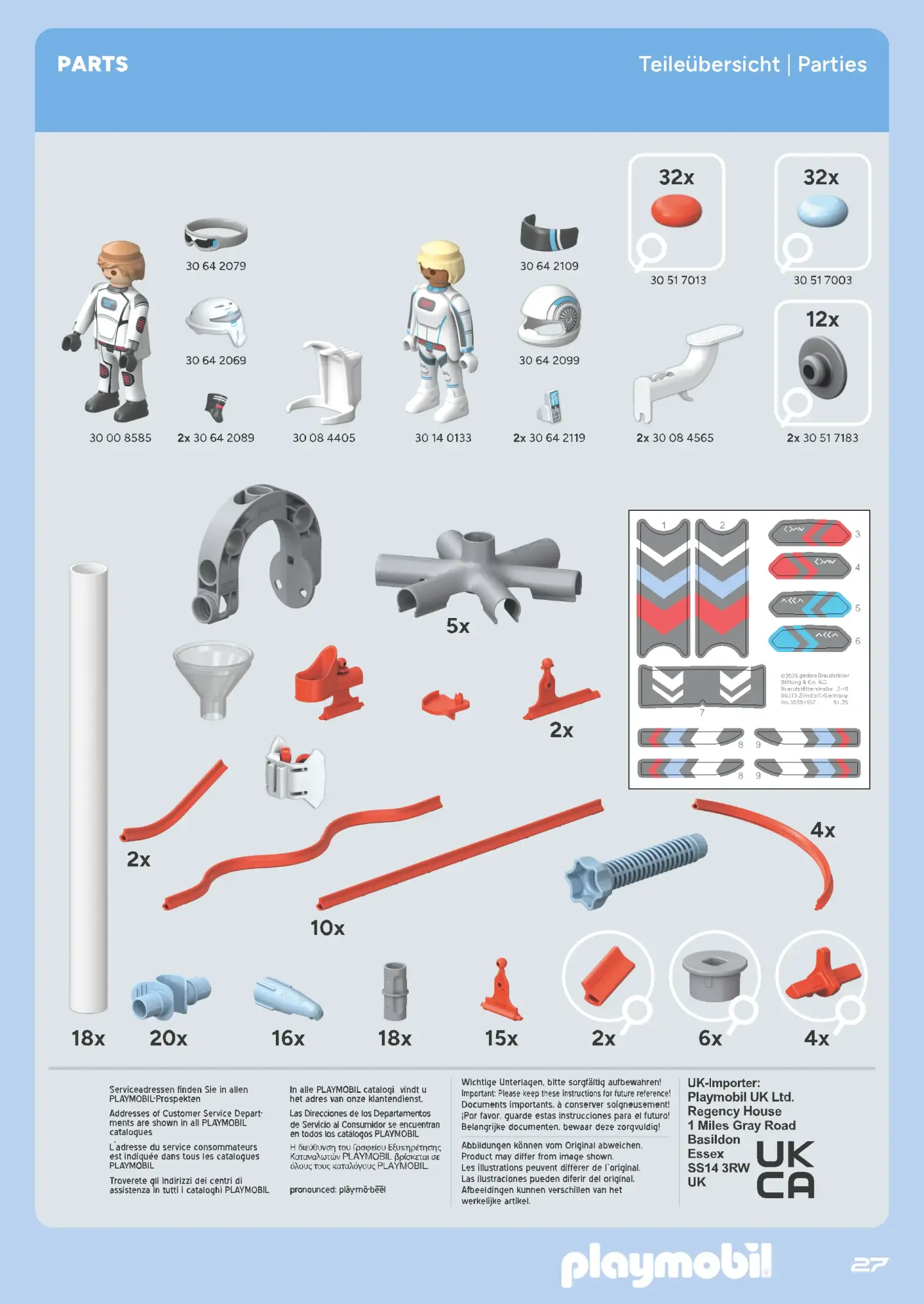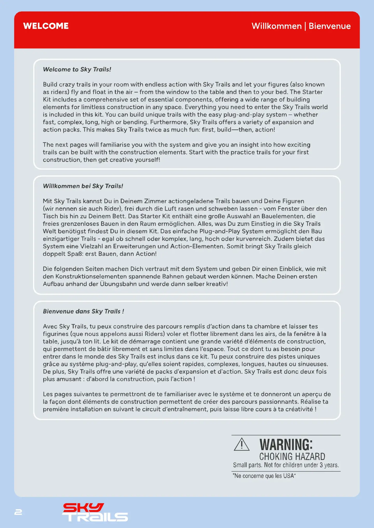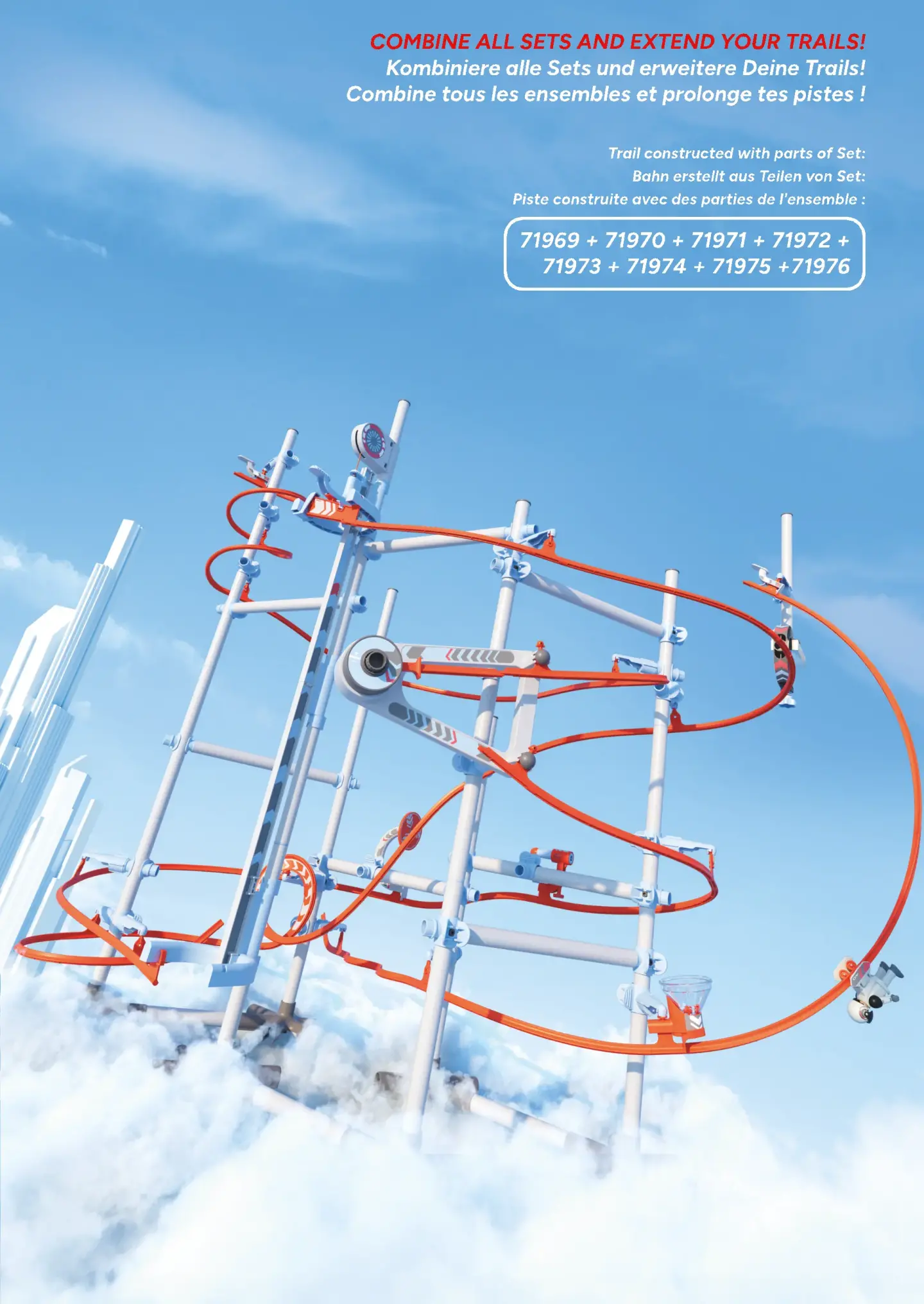 Startsetet Sky Trails 71969 låter barn bygga spännande höghastighetsbanor inomhus med kurvor, hopp och loopar. Innehåller över 100 delar, inklusive rör, ramper, glidskenor, propellrar, vågformade banor och en konfettitratt för episka stunder. Det användarvänliga plug-and-play-systemet uppmuntrar till oändliga kreativa designer genom möbler och utrymmen. Innehåller 2 PLAYMOBIL-figurer och allt som behövs för att börja leka direkt. Modulärt startset som är kompatibelt med alla Sky Trails-tillägg för ännu mer kul och utmaningar. Förvandla ditt rum till en SKY TRAILS värld Upptäck SKY TRAILS Starter Kit 71969 – ett unikt lekset där fart möter kreativitet! Skapa egna banor med svängar, hopp och spektakulära loopar som får din Sky Rider att flyga genom rummet. Med det smarta plug-and-play-systemet bygger du enkelt nya banor varje gång. Starta, justera och experimentera – gränsen sätts bara av din fantasi! Bygg din bana på ditt sätt Med SKY TRAILS kan du kombinera rör, kopplingar och räler för att skapa precis den bana du vill ha. Hög, lång, galen eller slingrande – varje bana blir unik! Låt din Sky Rider flyga fritt Starta från fönsterbrädan, låt din rider susa över bordet och landa på sängen. Upplev farten, svängarna och hoppet i varje tur! Utöka för ännu mer action Starter Kit 71969 innehåller allt du behöver för att börja, men du kan alltid lägga till fler delar för ännu mer kreativitet och lekglädje. Viktiga Funktioner Bygg, testa och skapa utan gränser Tack vare det flexibla plug-and-play-systemet kan du bygga om din bana när som helst. Experimentera med olika höjder, vinklar och banformer för att hitta din perfekta SKY TRAILS-rutt. Allt du behöver finns i lådan SKY TRAILS Starter Kit 71969 kommer komplett med rör, adaptrar, räler och klämmor – så du kan börja leka direkt. Allt du behöver finns i ett set, redo för äventyr! Låt fantasin ta täten Oavsett om du bygger en vild bana eller en kreativ bana med hinder, ger SKY TRAILS timmar av lek. Följ farten, skapa egna utmaningar och njut av äventyret varje gång!
