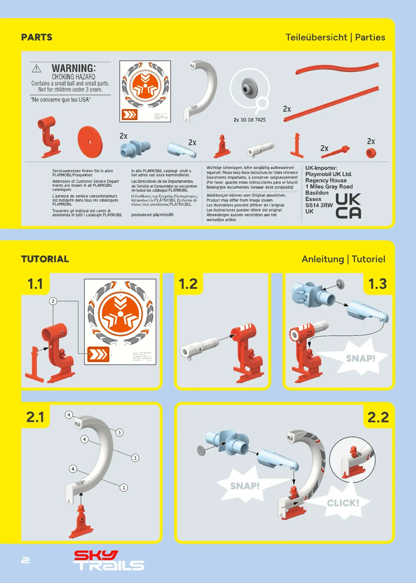 Med PLAYMOBIL Sky Trails Track Blaster lägger du till extra spänning och precision i din bana. Låt din Sky Rider träffa målet för att öppna passagen. Endast ett träffsäkert skott låter färden fortsätta. Placera Track Blaster smart för maximal utmaning och lekgädje. Perfekt för barn som gillar fart, precision och att bygga kreativa banor! Skapa fartfyllda äventyr med Sky Rider Se upp, SKY TRAILS-äventyrare! Spänningen når nya höjder när din Sky Rider susar genom den hisnande loopingsektionen. Med rätt fart trotsar åkaren tyngdkraften och flyger genom luften – en upplevelse full av energi och rörelseglädje! Bygg din bana smart, utmana fysikens lagar och gör varje tur till ett spektakulärt ögonblick som väcker leklusten till liv. Bygg din bana som ett proffs Utforska nya sätt att skapa unika banor med looping och fartfyllda sektioner. Planera svängar, övergångar och lutningar för att ge din Sky Rider den perfekta starten inför det stora hoppet. Upplev fart och kontroll Med rätt byggteknik och strategi får du maximal fart genom loopingsektionen. Se hur din åkare svävar fritt och landar säkert – en riktig adrenalinkick varje gång. Utöka din samling Kombinera med fler delar från SKY TRAILS-serien för ännu längre banor och större utmaningar. Looping-förlängningen är lätt att montera och öppnar upp för oändliga möjligheter i ditt äventyrsbygge. Viktiga Funktioner Förvandla din bana med looping-effekt Looping-förlängningen gör din bana till en spektakulär upplevelse. Med tre robusta delar och enkel montering får du en stabil och imponerande sektion som lyfter leken till nästa nivå. Få ut det mesta av ditt Starter Kit För att använda denna förlängning krävs Starter Kit 71969. Tillsammans ger de dig möjligheten att bygga, utöka och anpassa din SKY TRAILS precis som du vill. Låt fantasin ta fart på nya höjder Upptäck känslan av äventyr när din Sky Rider rusar genom loopingen och utmanar varje sväng. Varje tur blir en ny historia fylld av fart, mod och kreativitet – perfekt för små äventyrare som älskar att tänja på gränserna och skapa sina egna hisnande banor.